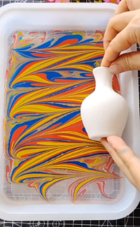Sumérge el objeto: Introduce el objeto en el agua lentamente. El diseño líquido se adherirá a la superficie del objeto.
